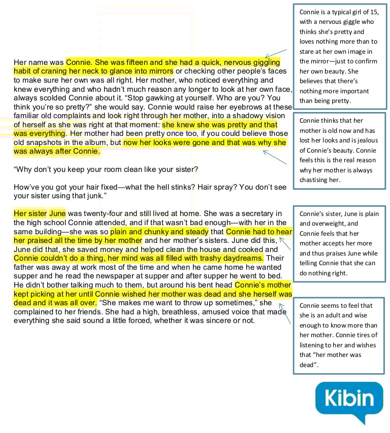 - Annotations should not only summarize but should also make connections. Remember, when analyzing literature, it’s not enough to simply identify information. You’re trying to figure out what it all means. In this sample annotation, comments examine Connie’s words and actions in an attempt to further understand her as a character.