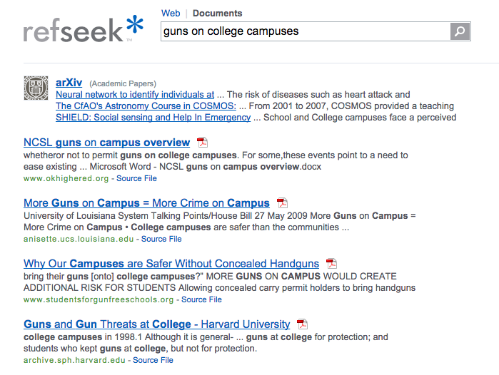 One of the great features of RefSeek is that it allows you to search specifically for documents, giving you a better chance of finding credible information to help write your research paper.