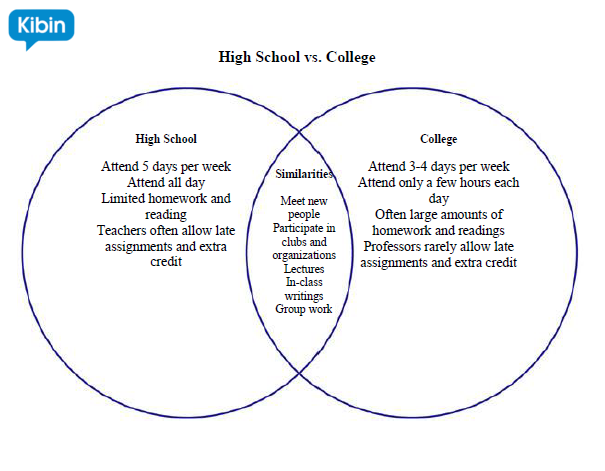 Here’s an example of what a Venn diagram might look like if you’re comparing high school to college.