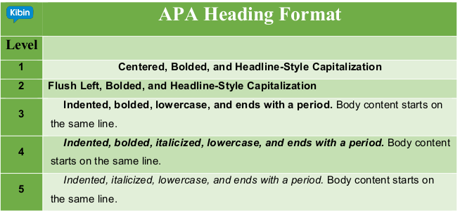 Here’s each APA heading level and how you should format it: