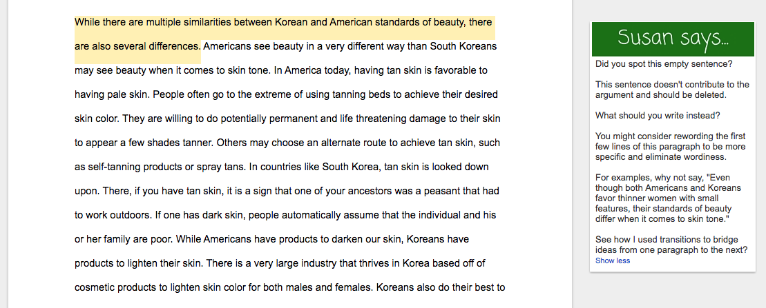Keep in mind, these compare and contrast essay examples aren’t perfect. Thus, I’ve also highlighted a few areas in need of improvement.