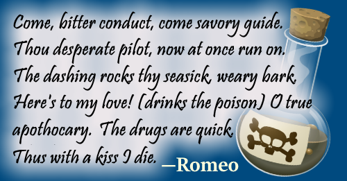 In addition to going into more depth about the poison that kills Romeo and, by extension, Juliet (even though she doesn’t actually drink the poison), I would also talk about the other symbols of death that surround the apothecary.