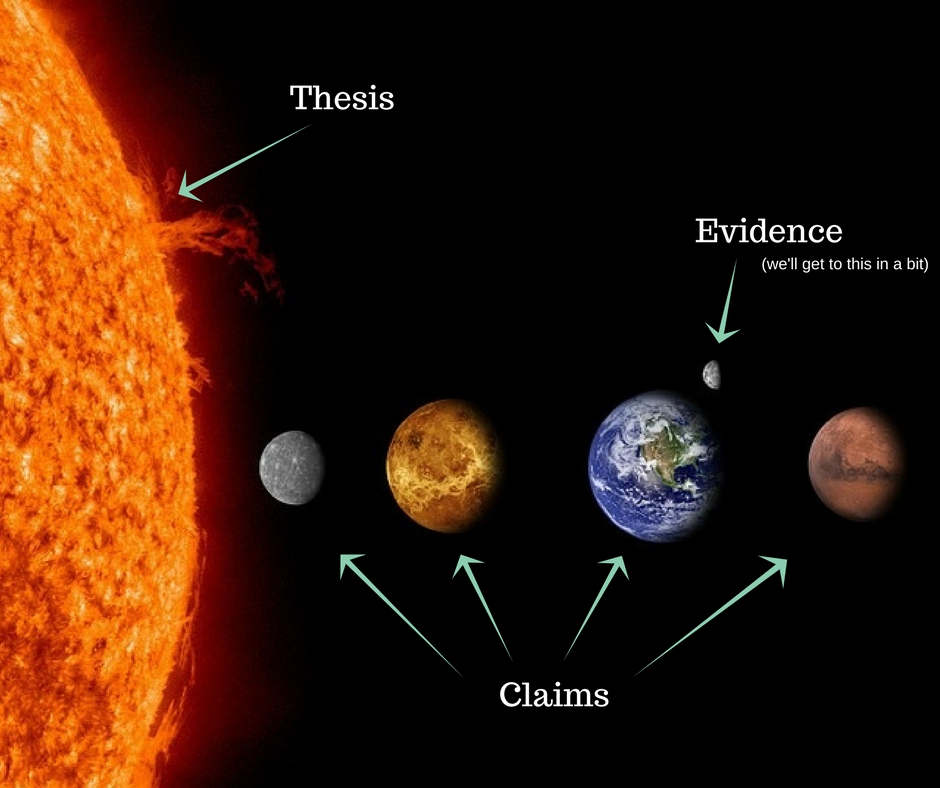 Your evidence orbits closely around the claim while revolving around the thesis as a whole.